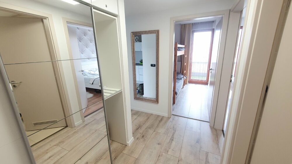 Nappali, plusz kettő hálószoba, konyha étkező, tágas előszoba, fürdőszoba, nagy 20nm es terasz.